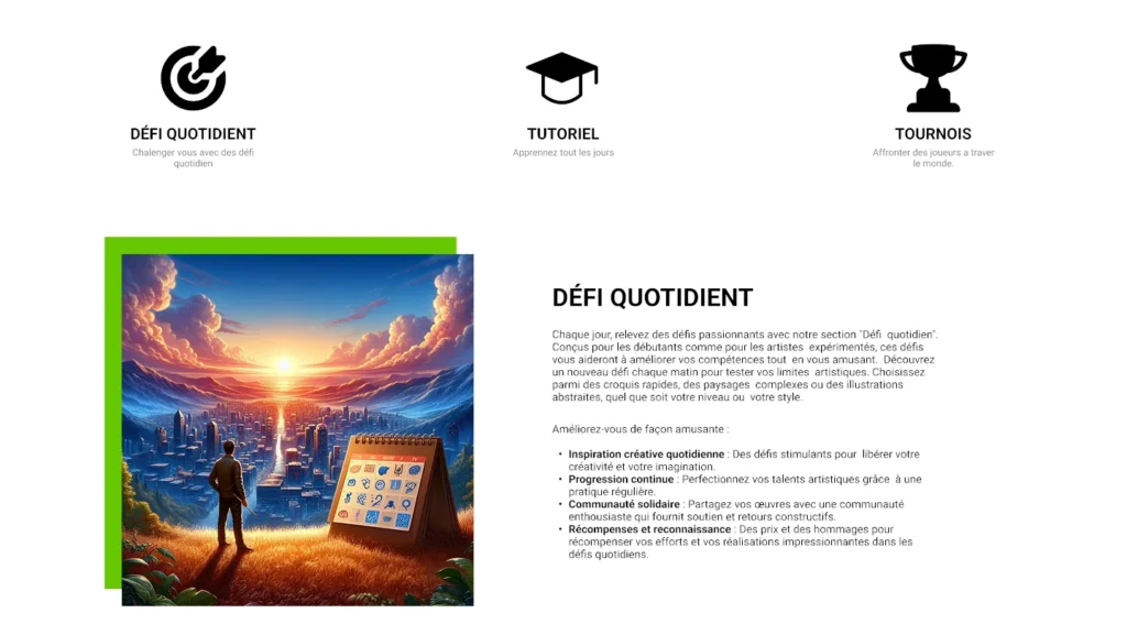 - Des défis variés et quotidiens pour stimuler l’inspiration