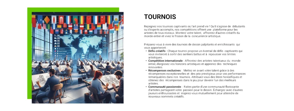 L’idée de DrawJourney est née de ma passion pour la créativité et l’apprentissage par le jeu. J’ai imaginé une application dynamique qui propose :